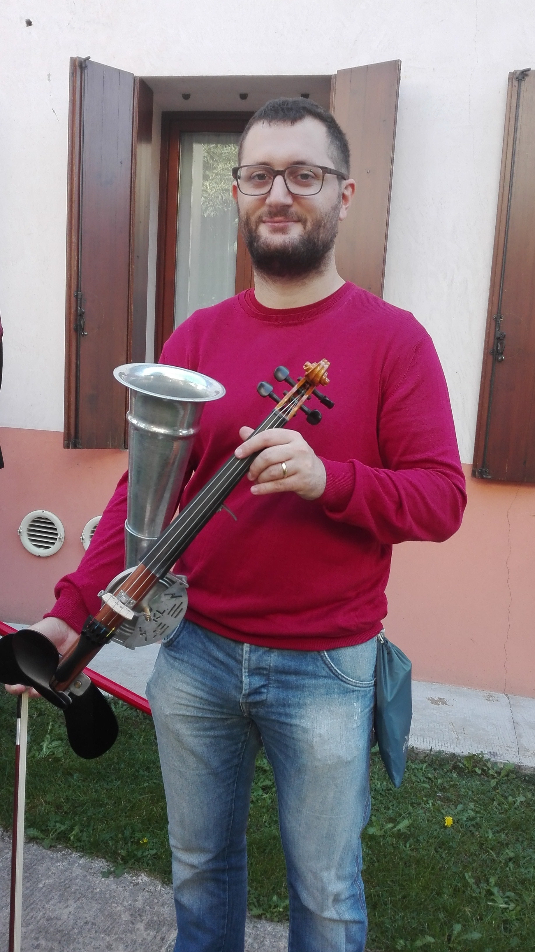 Ich entdecke ein mir bislang unbekanntes Musikinstrument und erfahre von Enrico, dass es sich um eine nach ihrem Erfinder benannte Stroh-Geige handelt.