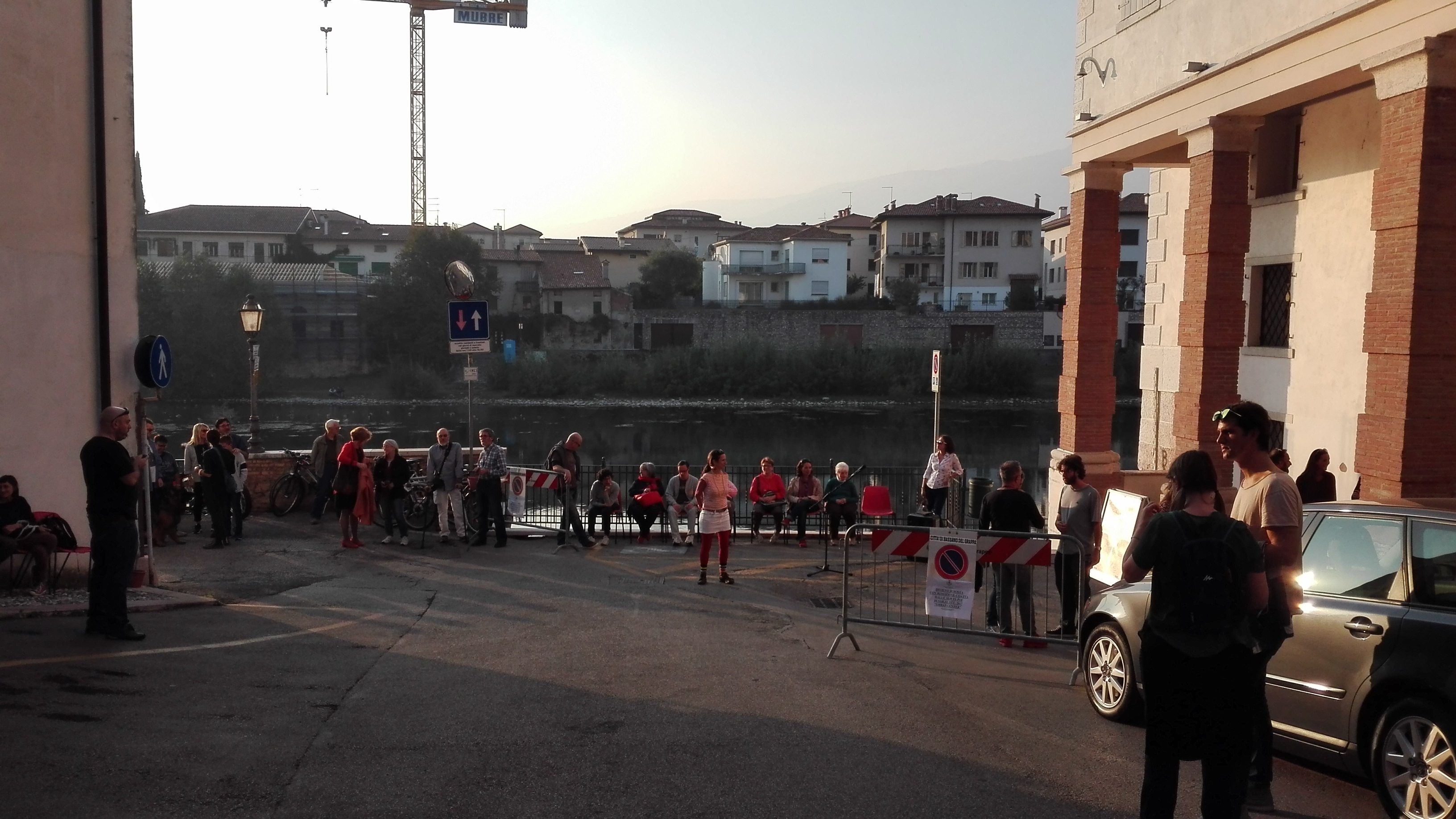 Aber bitte, WOZU der ganze Aufwand? Ich finde den Projektleiter, Mattia, seines Zeichens Wissenschaftler an der Uni Venedig im Bereich Stadtentwicklung. Ein halbes Jahr lang hat er sich mit einer Ecke von Bassano beschäftigt, um die es still geworden ist. Immer weniger BewohnerInnen, kein Zuzug. Dabei ist es wunderschön in der Gegend des alten Hafens rund um die Piazza di Brenta.