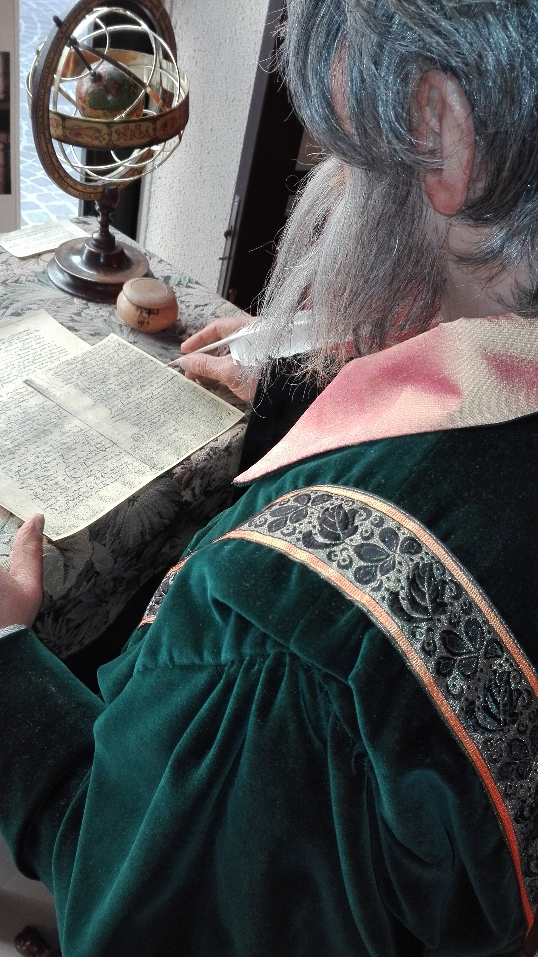 Ich kann mein Glück kaum fassen. Nostradamus geht tatsächlich zu seinem Schreibtisch, nimmt die Feder zur Hand und beginnt mit seinen Aufzeichnungen.