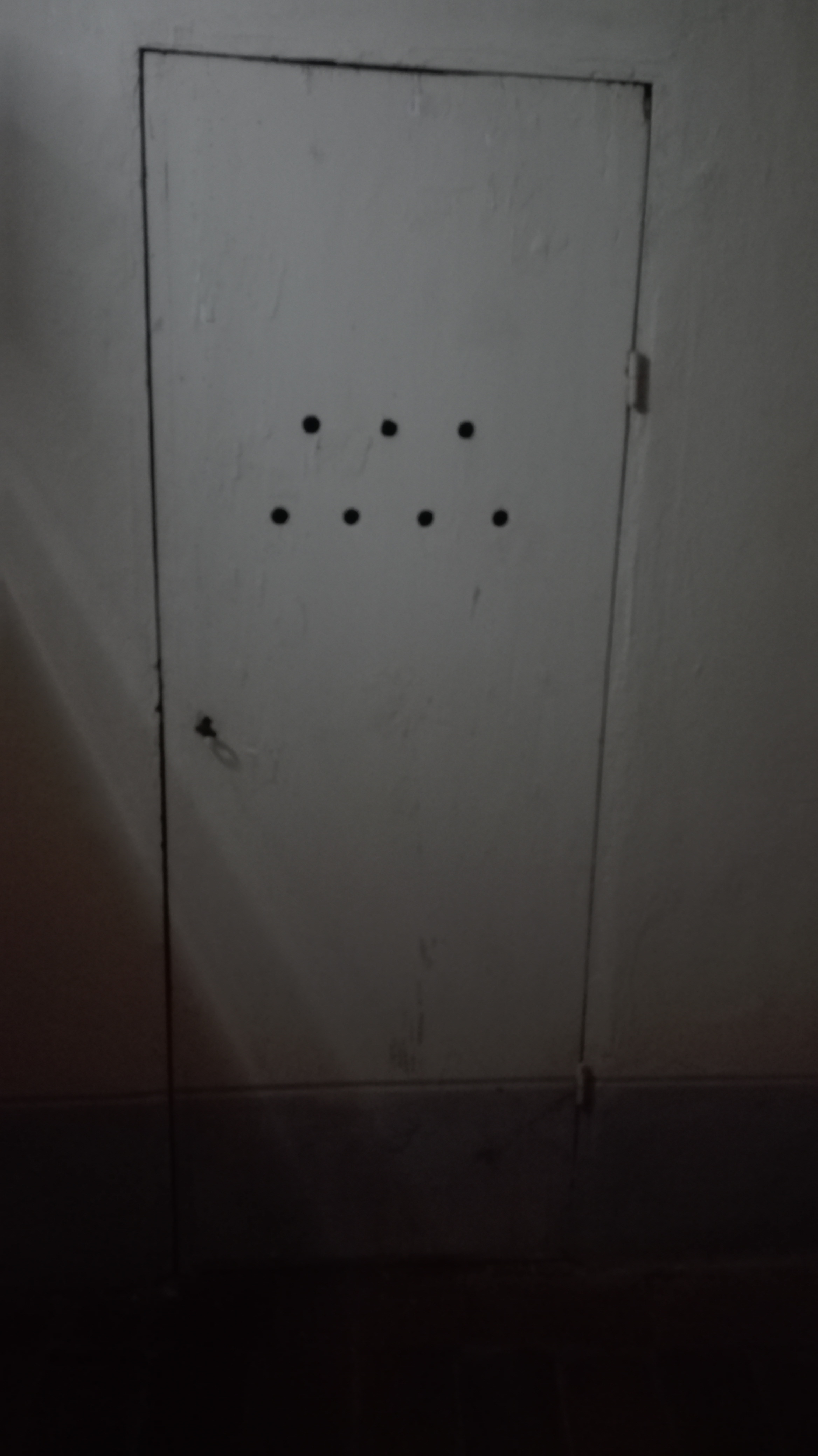 Weiter geht es durch schmale Gänge nach unten. Da, die nächste Tür. Mit Lüftungsöffnungen! Spannend…