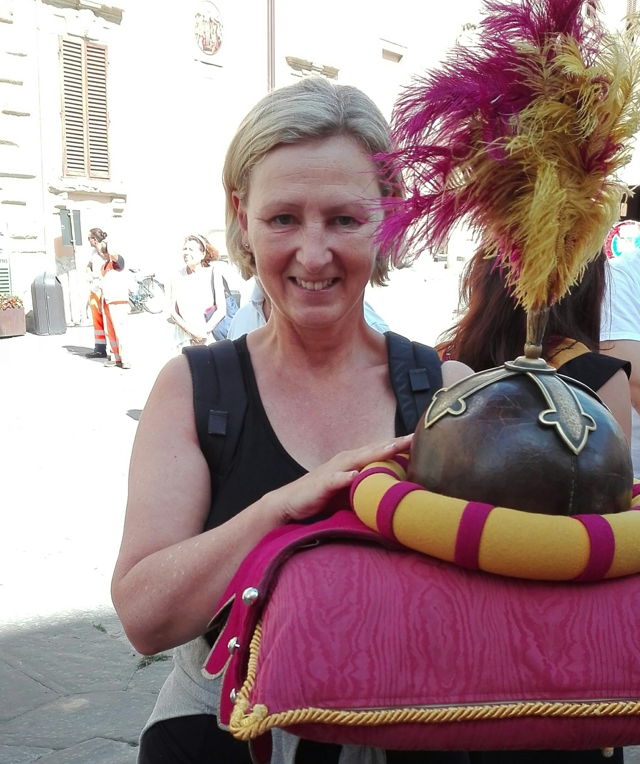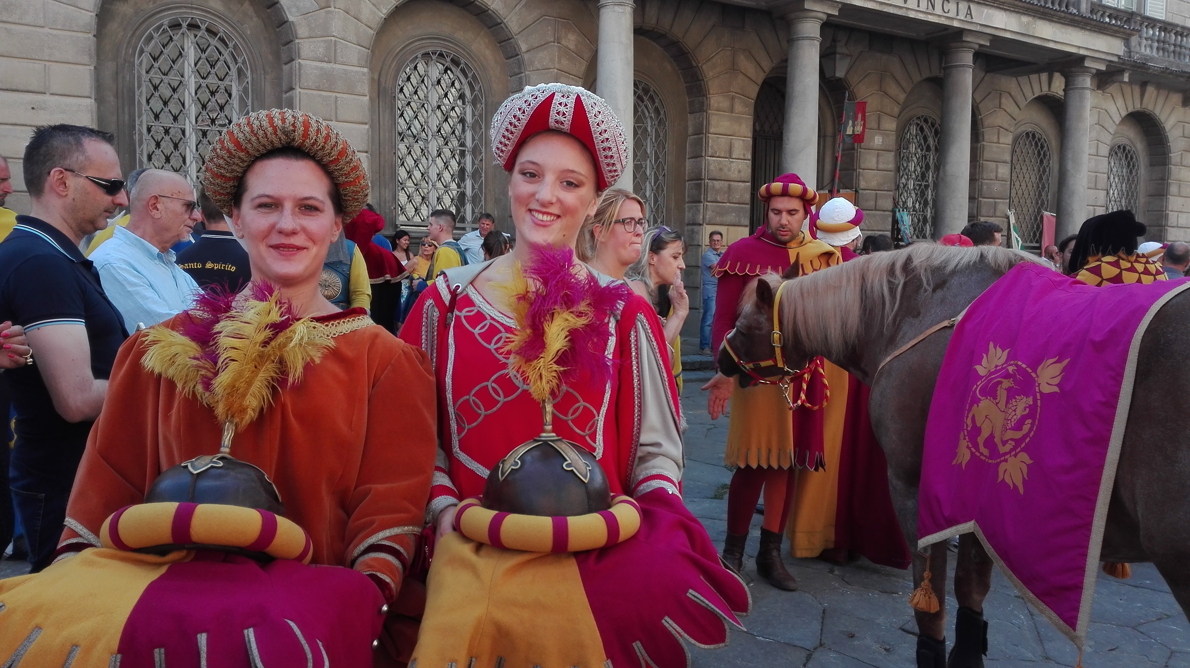 Sie hüten die Helme der beiden Ritter, die für Porta Crucifera kämpfen werden.Ich darf auch kurz halten!Del ForoSanto SpiritoSant AndreaCruciferoJeder Stadtteil wird durch seine Farben repräsentiert. Die Bewohner und sonstige Fans tragen entsprechende Halstücher.