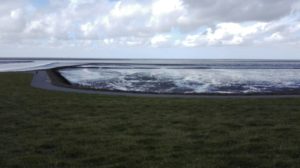 Mensch und Tier gegen die See hin zu schützen, hat sich zu einer eigenen Wissenschaft entwickelt. In früheren Zeiten half man sich durch die Errichtung von sogenannten Warften, kleinen Erdhügeln, auf denen die Behausungen errichtet wurden und die noch überall zu sehen sind. Deiche gibt es seit Jahrhunderten, aber ihre Weiterentwicklung ist überlebensnotwendig und ausgeklügelt. So bevölkern zahllose Schafe diesen Verteidigungswall und sorgen durch ihr Gewicht für die Befestigung des Erdreichs. Das Fleisch dieser Salzwiesenlämmer gilt als Spezialität und wird teuer gehandelt. Der Schlafdeich bildet einen zweiten, innenliegenden Schutzwall. Beständig muss gebaut und erhöht werden, der Klimawandel mit dem prognostizierten Ansteigen der Meeresspiegel ist eine große Herausforderung.
