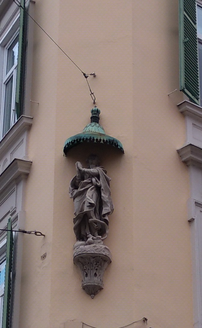 Und heute werden wir sakral: Auf welchem Platz in Graz muss ich stehen, damit ich diese drei Statuen im Blick haben kann. Oder sie mich, wie immer alles eine Frage der Perspektive!