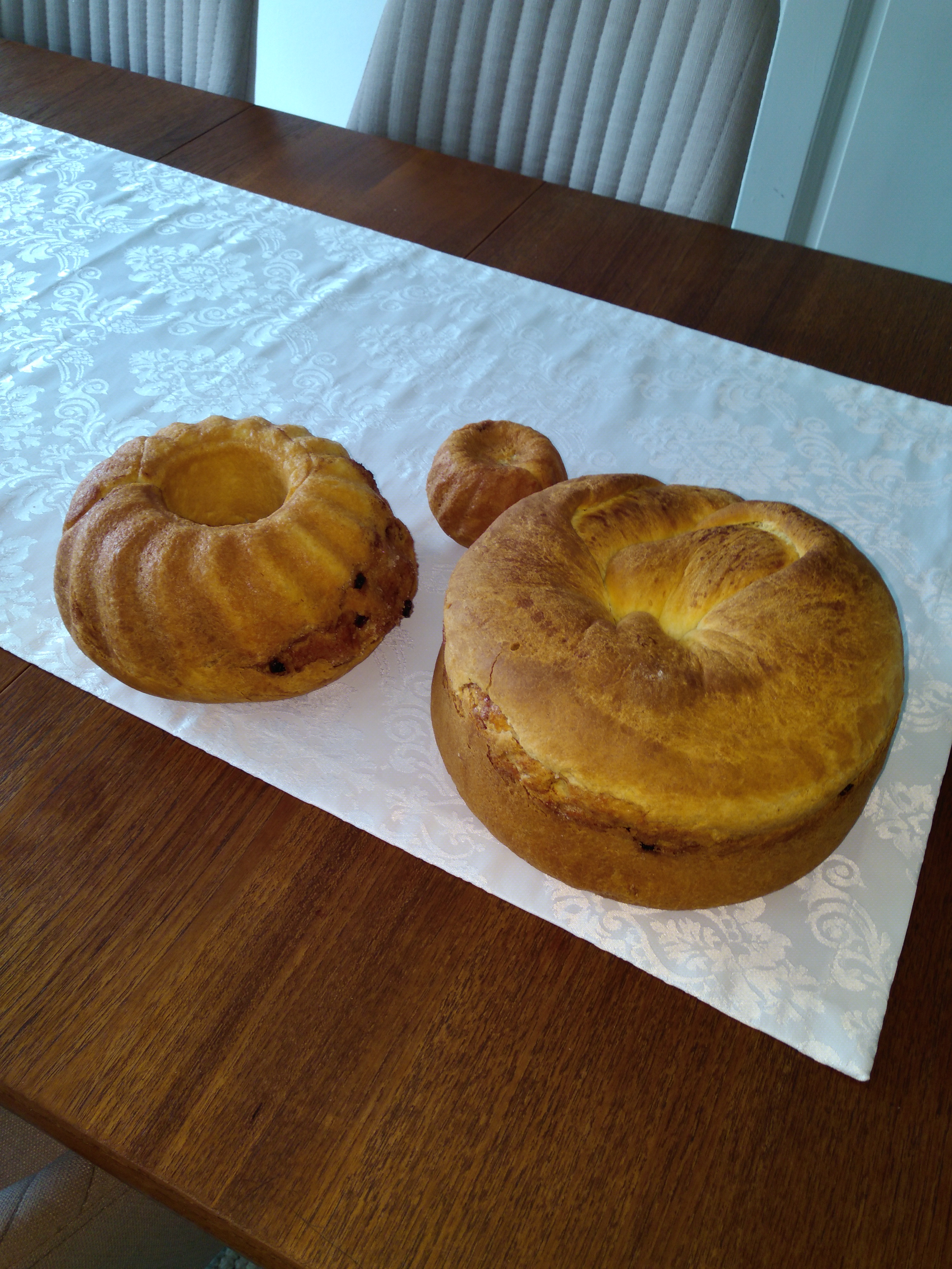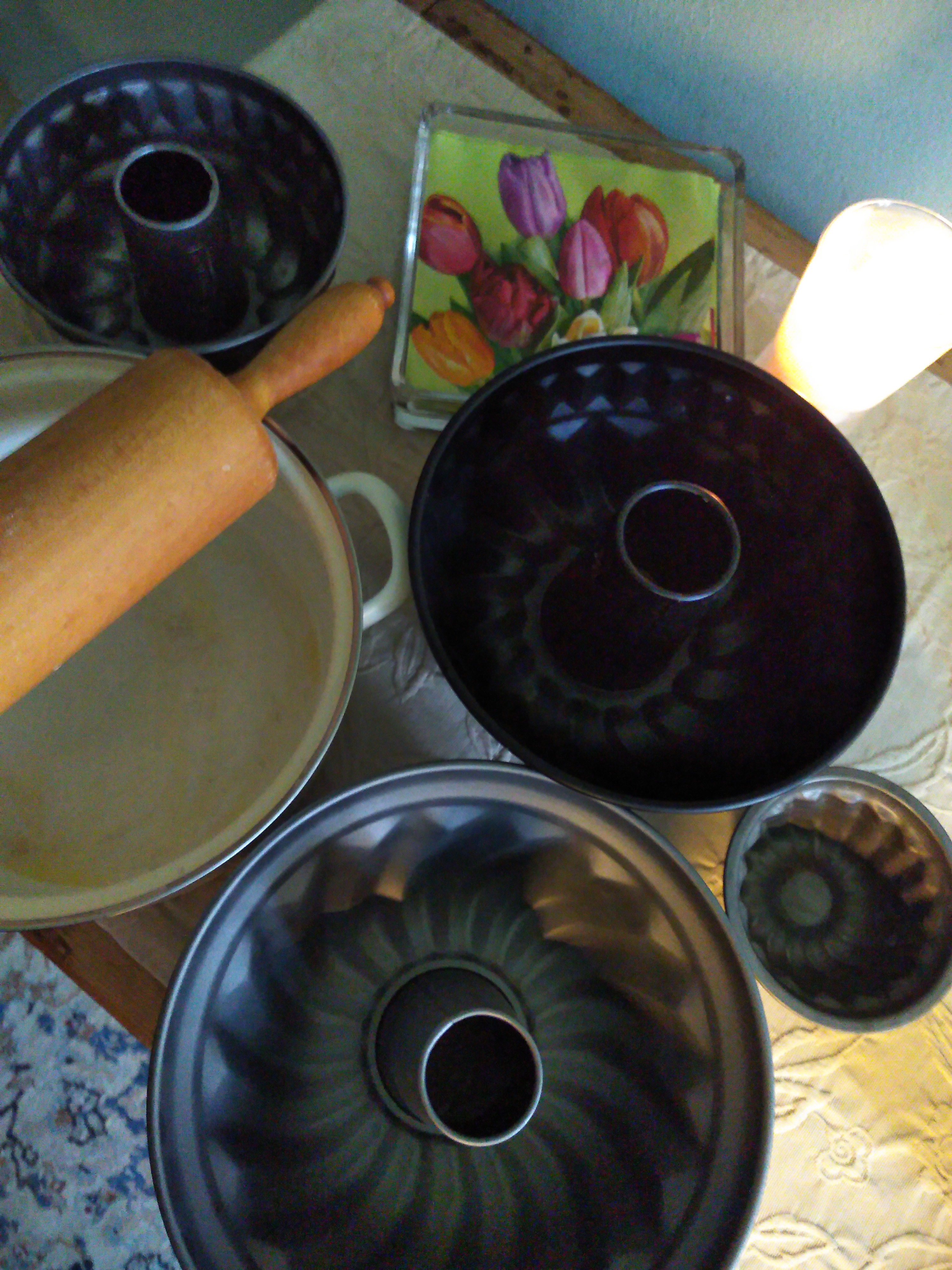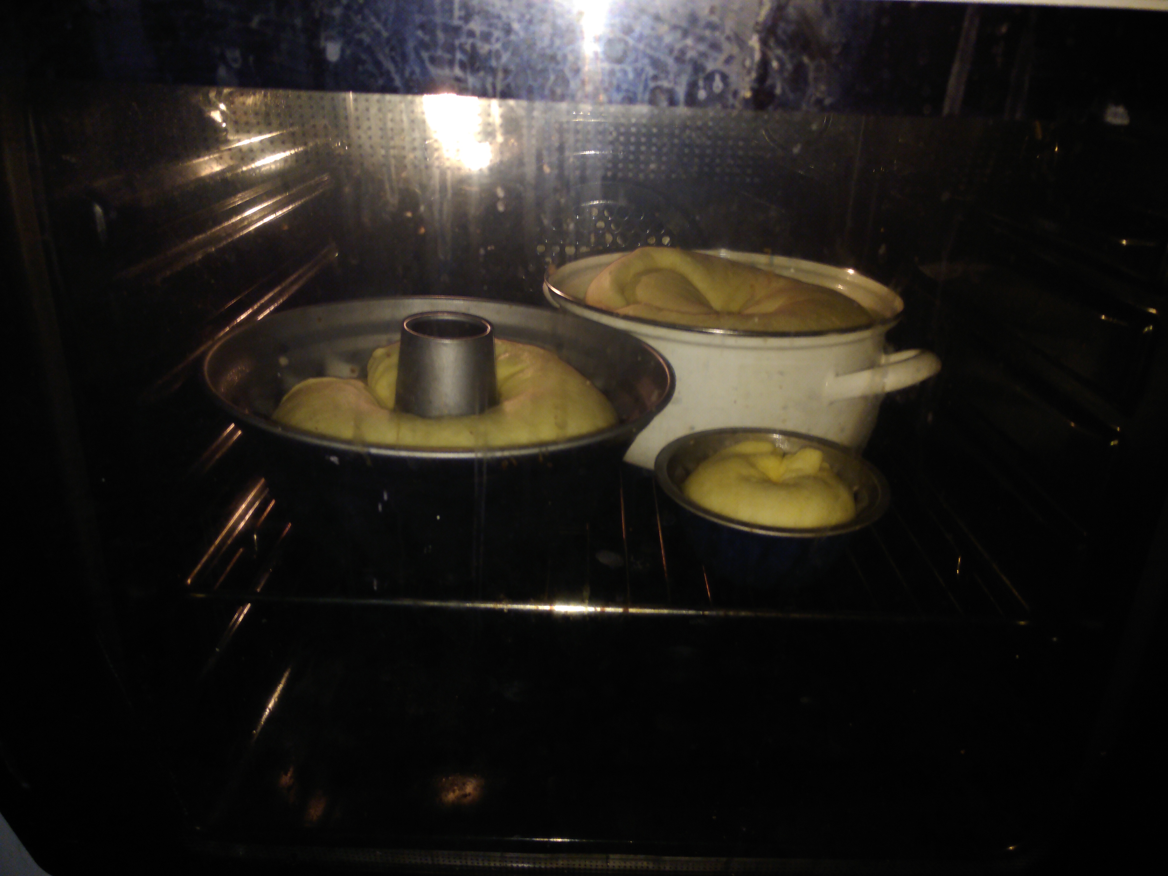 Ich muss heute anfangen, sonst krieg ich Stress. Wo ist der Zettel mit „wer welchen“ kriegt? Ah, da. Also zwei Große, einer davon ohne Rosinen, drei kleine, nein Blödsinn, vier Kleine. Aber die Ls haben heuer Besuch, die werden mit einem kleinen nicht auskommen. Vier Kleine und drei Große. Wenn ich jetzt schnell arbeite, könnten sich am Vormittag zwei Große und zwei Kleine ausgehen. Voriges Jahr war der Große für Wölfnitz ein bissl zu klein, ich könnte ja mehr Teig nehmen und mit einem ganz Großen anfangen und einen mittleren Kleinen dazu machen. Außerdem hab ich ja noch die winzige Form, wäre doch nett, bei jeder Runde einen Fuzzikleinen abzuzweigen. Eins nach dem anderen. Zuerst das Mise en Place, wo sind die Formen? Wieso bitte habe ich zwei ganz gleiche Gugelhupfe? Es ist eiskalt hier, das mag der Germteig gar nicht, es ist sehr unökologisch, mit dem Backrohr die Küche zu heizen, aber egal…