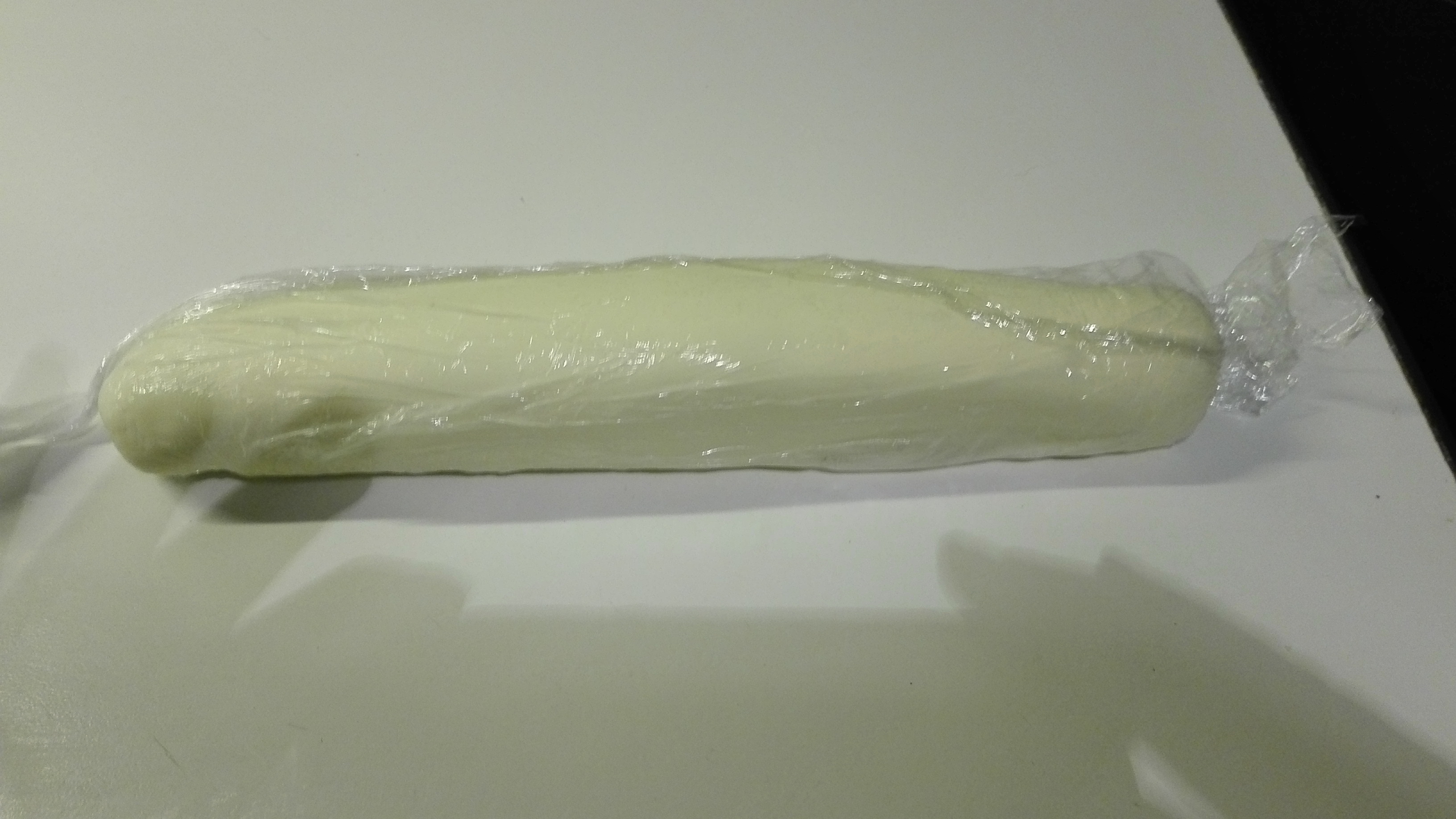Die Butter zwischen 2 Lagen Frischhaltefolie rechteckig auswalken. Nit verzweifeln, wenn’s fuchst, nach sieben bis acht Osterfesten wird es schon fast oval. Siehe Foto. Dazu ein paar Tipps: Butter aus dem Kühlschrank nehmen und ca 10 Minuten warten. Dann mit entsprechendem Krafteinsatz loslegen. Wenn die ausgerollte Butter vor dem Füllen samt Folie noch ein paar Minuten ins Kalte darf, bedankt sie sich mit freundlichem Einrollverhalten.