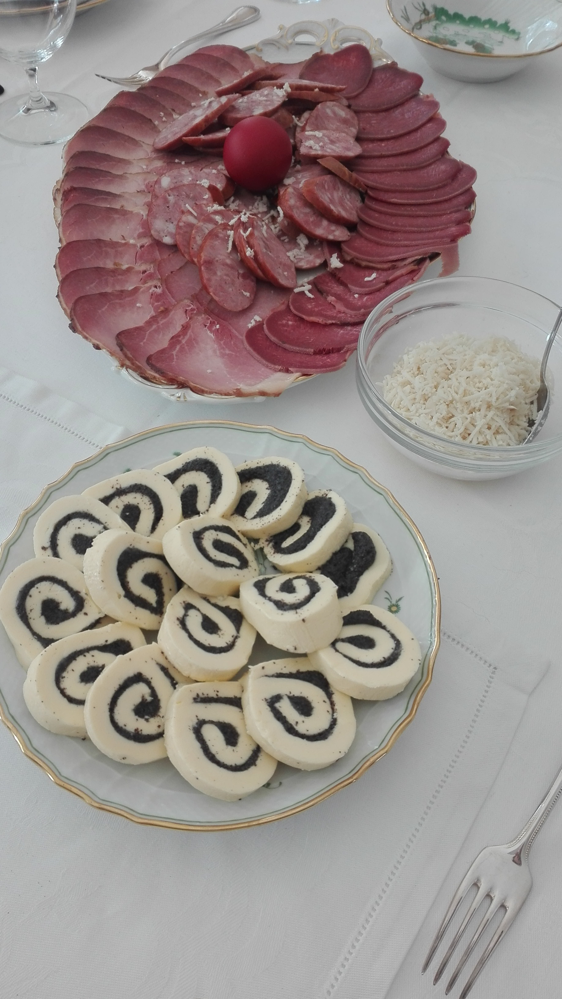 „Es handelt sich um Fruchtbarkeitssymbole, wahrscheinlich keltischen Ursprungs. Am Palmsonntag gehen wir dann mit kleinen solchen Sträußchen in die Kirche, um sie weihen zu lassen. Der nächste wichtige Tag ist dann der Karfreitag, an dem – so wie am Aschermittwoch – wieder besonders gefastet wird, indem wir Fisch essen. Im Übrigen sind wir gut damit beschäftigt, Schinken einzukaufen und zu kochen und Kuchen zu backen, denn am Karsamstag gibt es am Nachmittag ein großes Festessen, Osterjause genannt.“